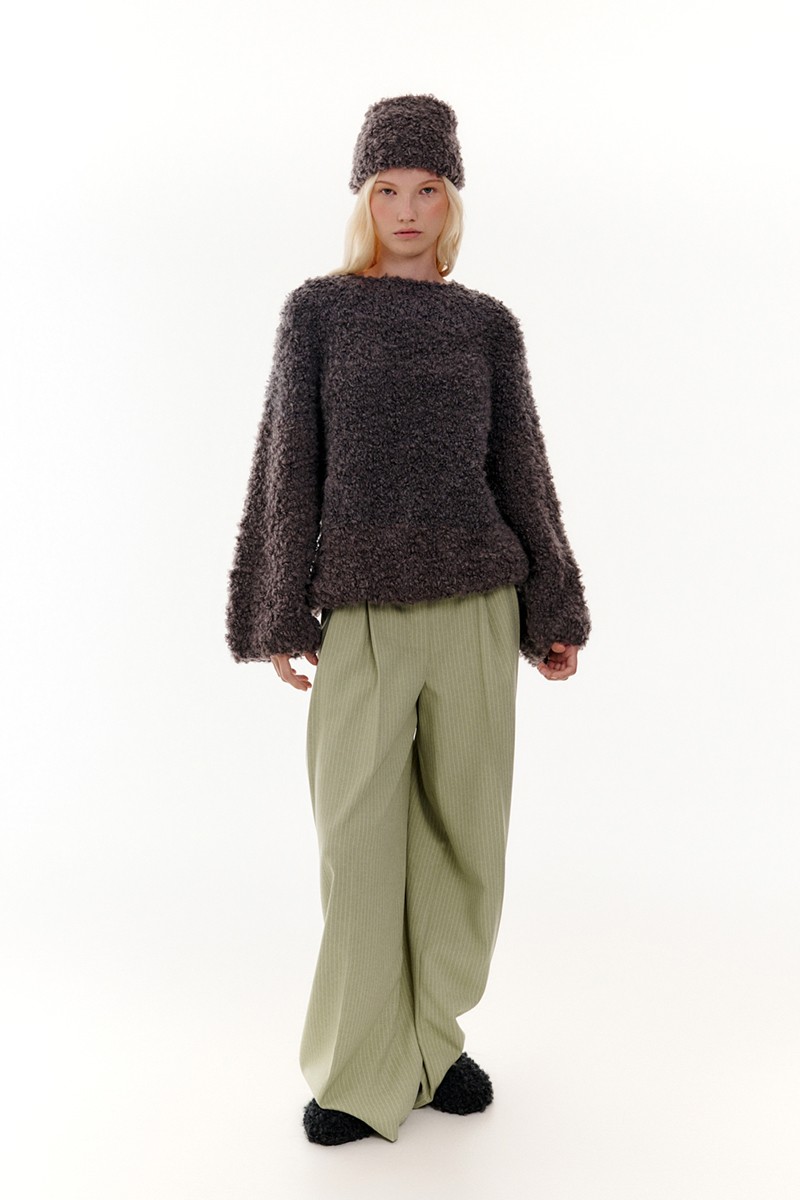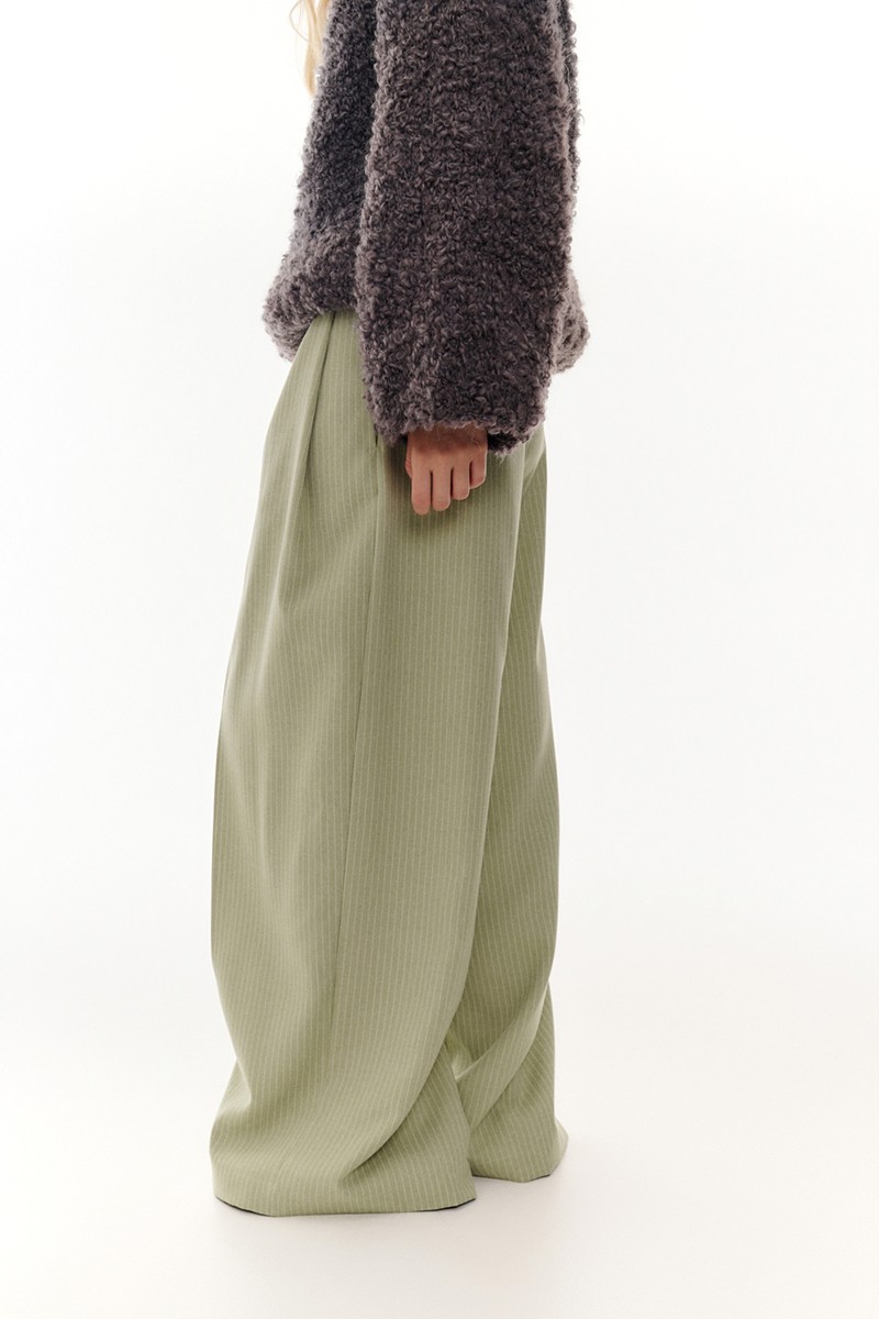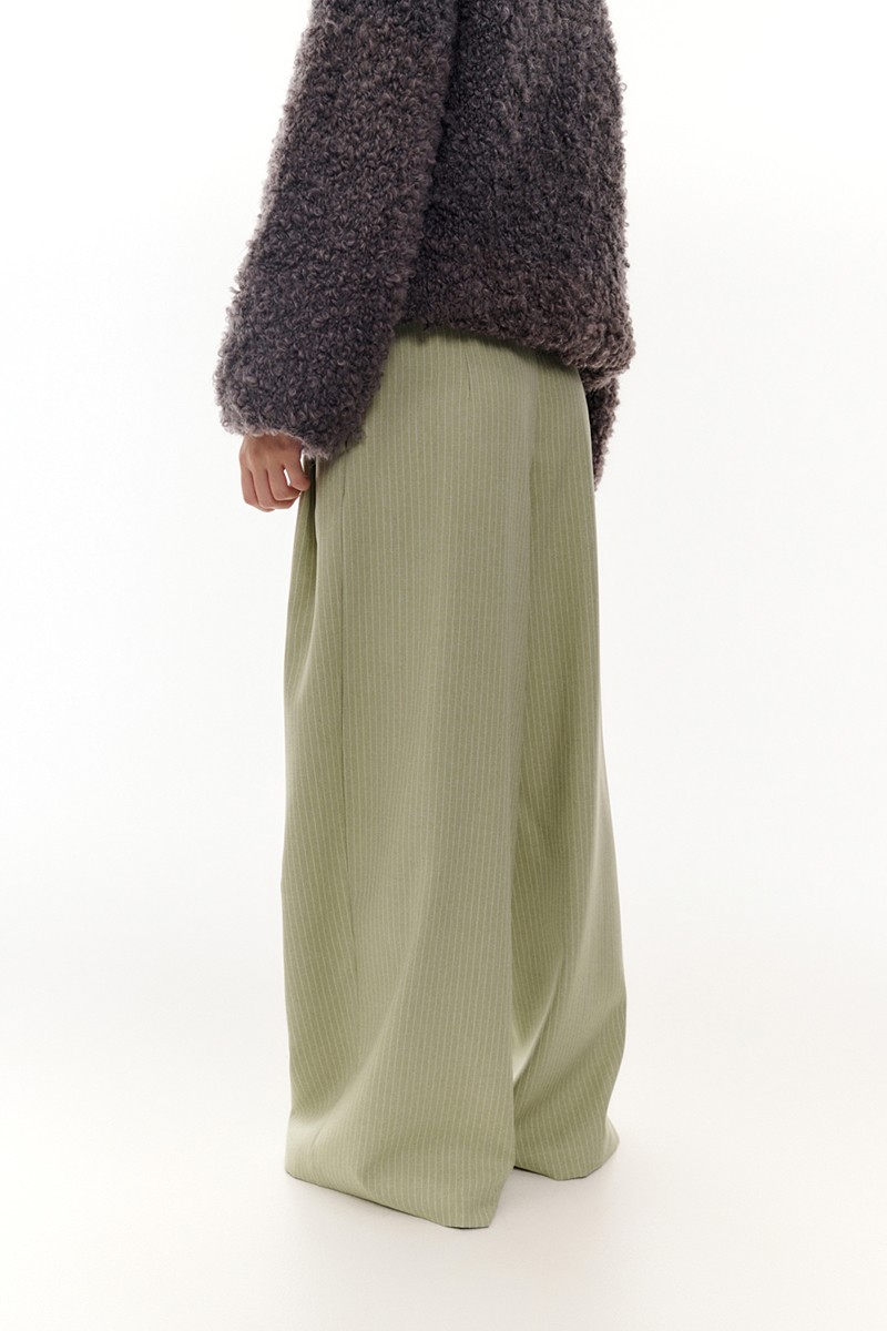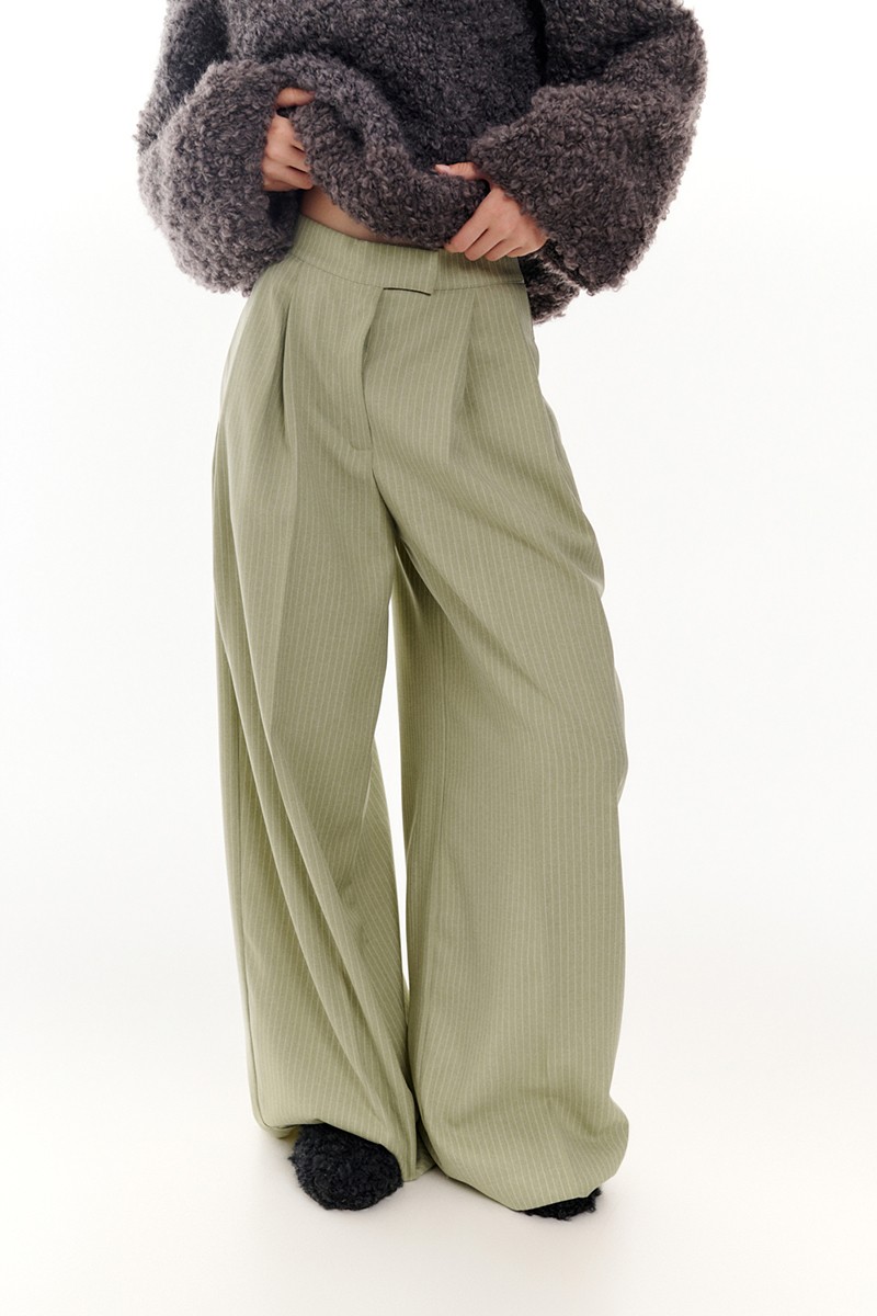 Брюки палаццо в мужском стиле со стрелками, в белую тонкую полоску оливковый