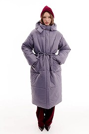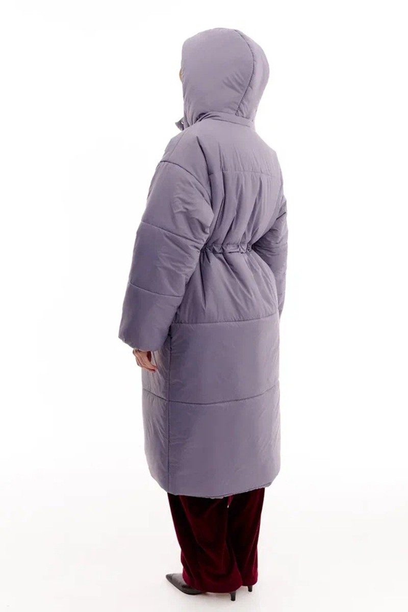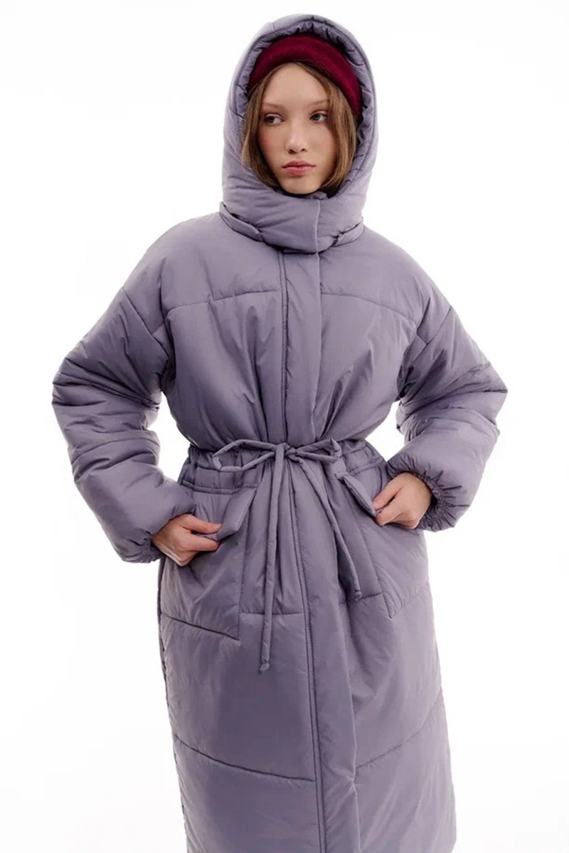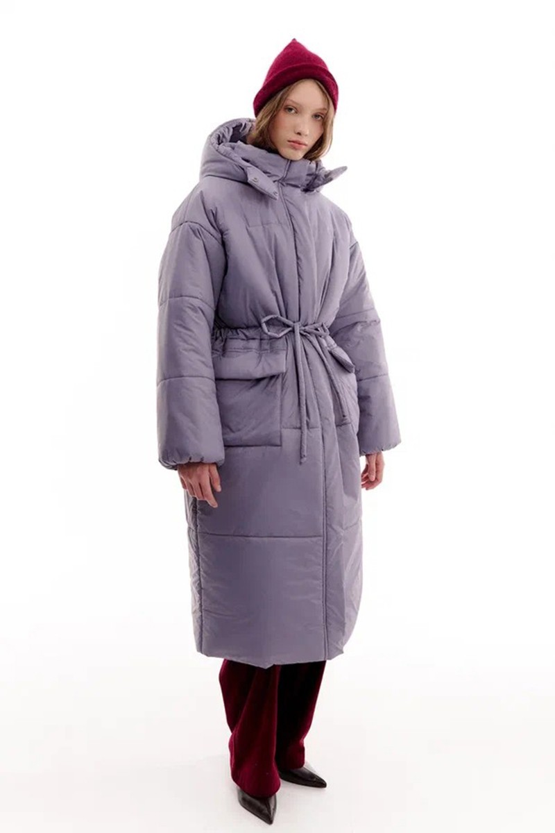 Commode Пуховик Maxi с кулиской на талии и съемным капюшоном, пыльно-лавандовый