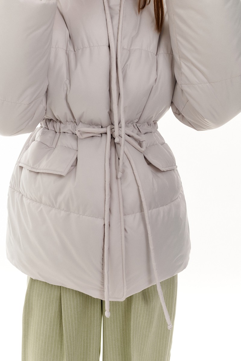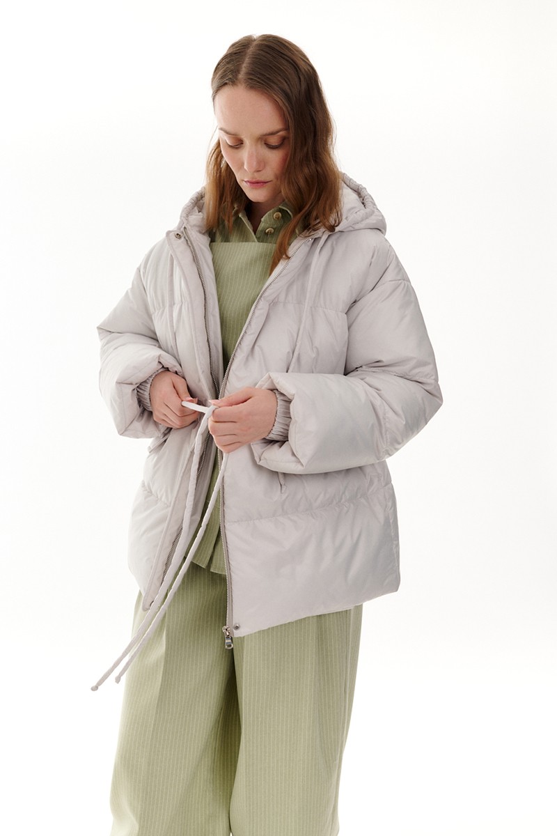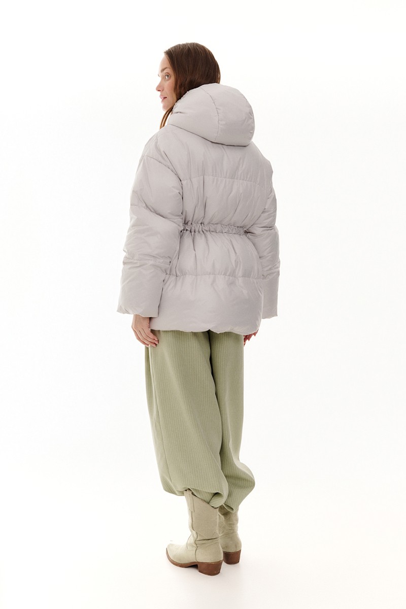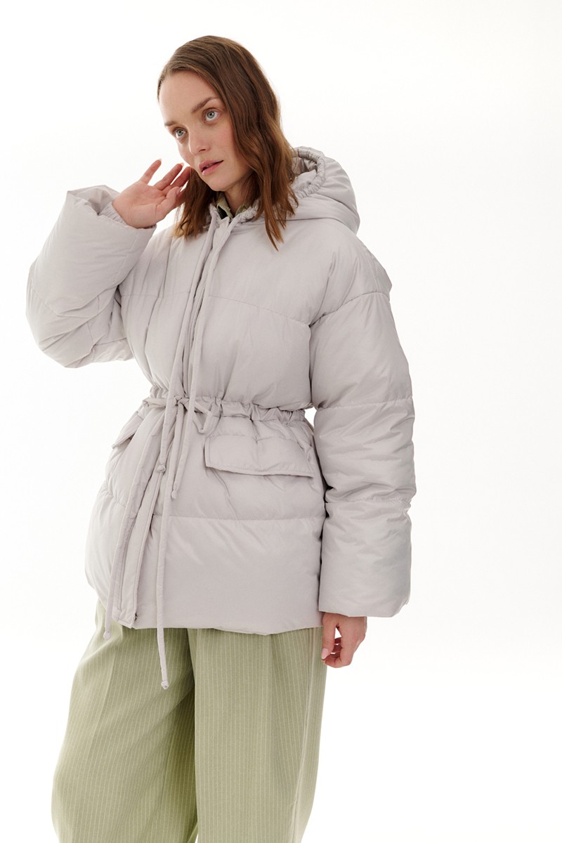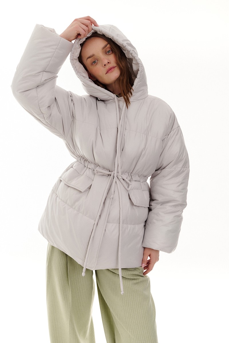 Куртка с капюшоном и кулисой по талии, серый фактурный