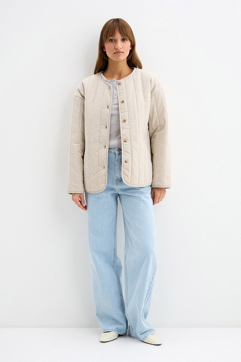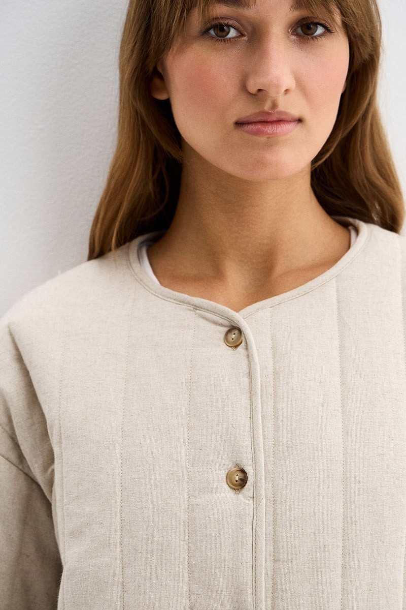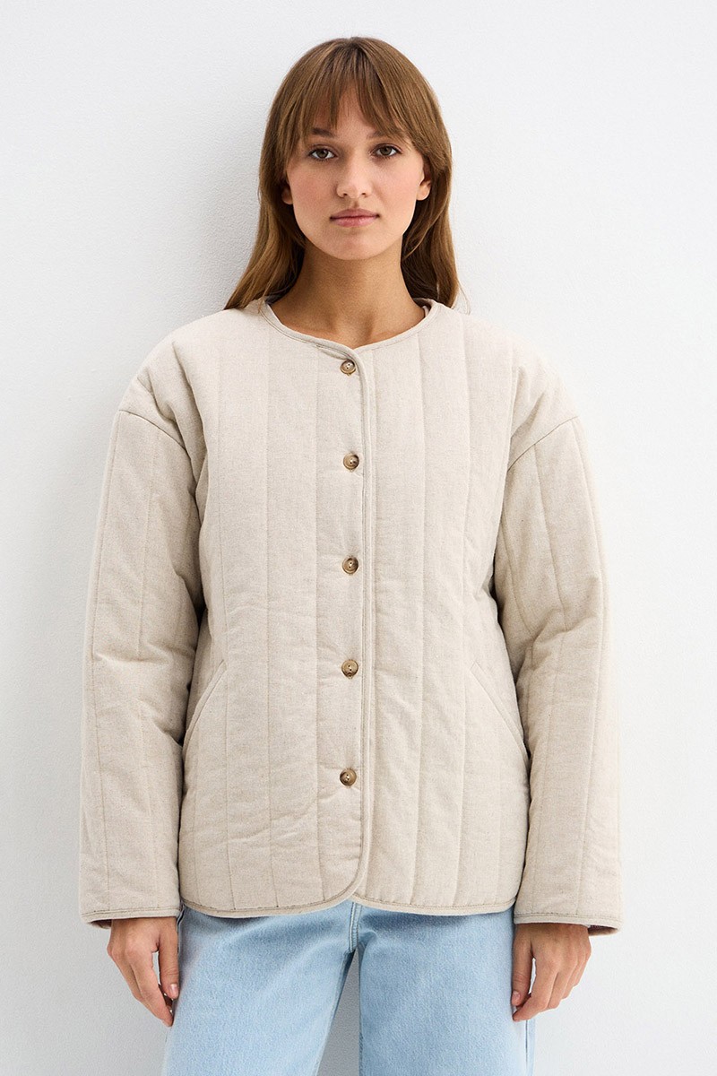 Куртка-телогрейка Стеганая Лён/хлопок Бежевая