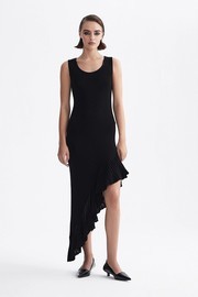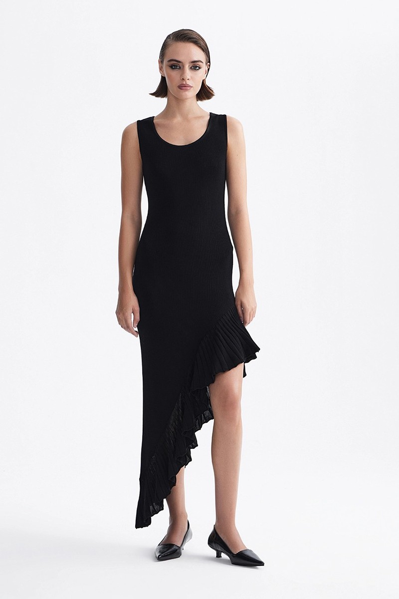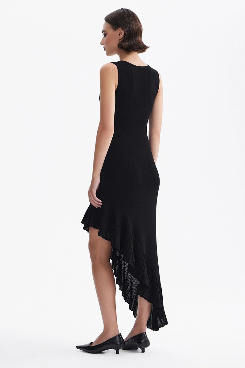 Платье футляр трикотажное с ассиметричным низом черное