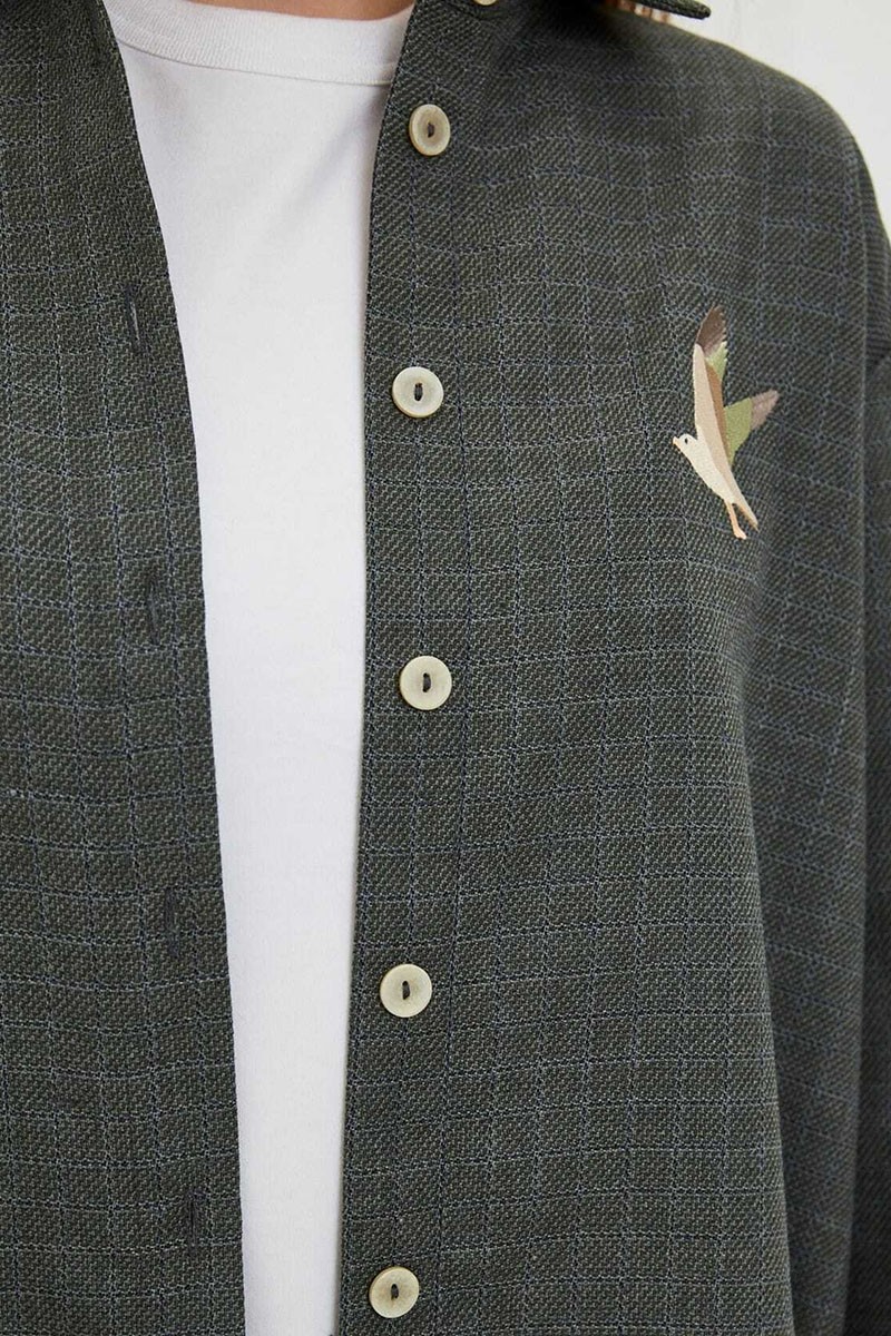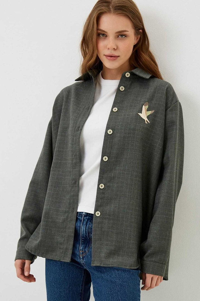 Рубашка Шерсть в клетку Серо-зеленая Чайка Берегите птиц