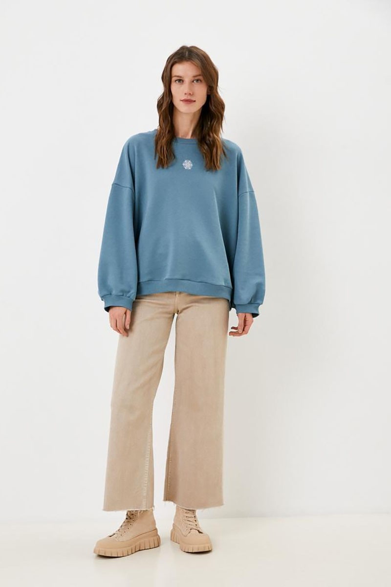 Свитшот с объемными рукавами Серо-голубой Снежинка